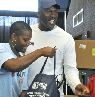 ===> Michael Jordan helped give out Thanksgiving dinners to at-need families in Charlotte, NC this Tuesday.