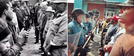 Similar to what residents of Selma, Alabama did on March 7, 1965 when attempting to march to the capital, and were struck by tear gas and billy clubs. Playing out that same M.O., Ferguson riot police threw tear gas at protesters and arrested two reporters last night.
