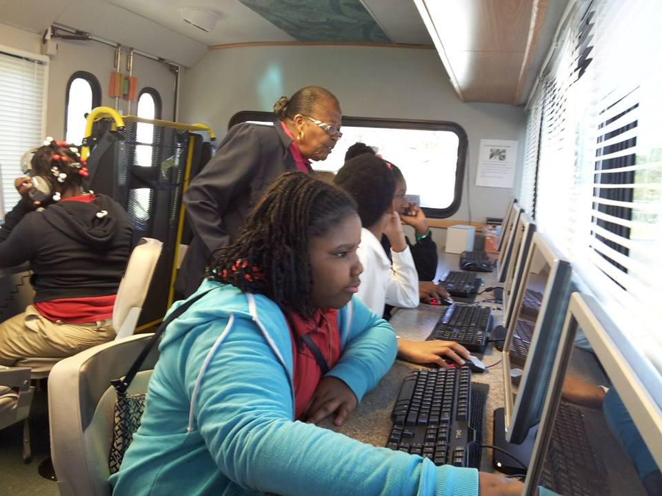 And while Ms. Frizzle can navigate her “Magic School Bus” through body cavities and into space, Ms. Estella’s Brilliant Bus–while on ground–is decked out with the latest technology to teach kids how to join the Digital Age.