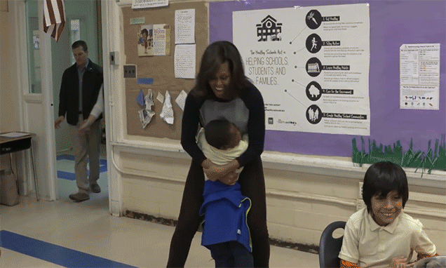 Number five is Michelle’s give back game. It’s epic. There wasn’t a school she didn’t visit or a soup kitchen line she didn’t serve a meal.