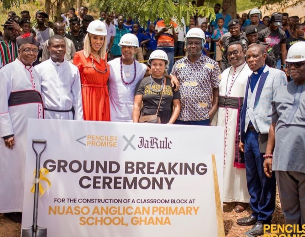 Ja Rule broke ground on a “six classroom block” at Nuaso Anglican Basic School on April 10th alongside his wife, Aisha and partner Pencils of Promise (PoP); a charity to advance global education.