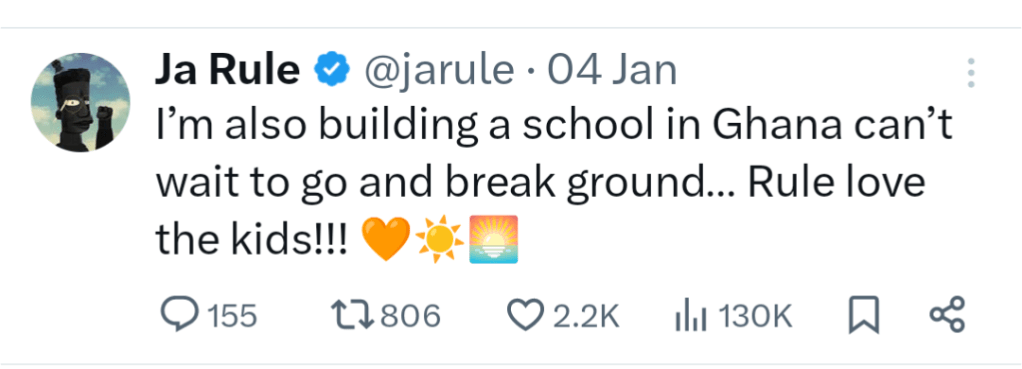 Ja Rule is following in the footsteps of comedian Michael Blackson who opened an Academy in Ghana.