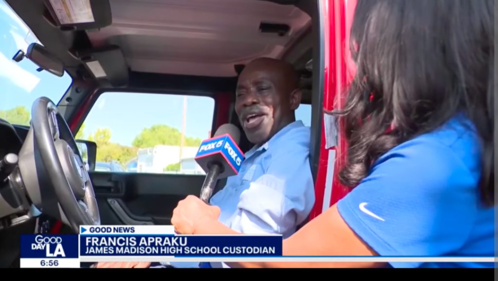 Students at James Madison High School are anything but demure for the love of their custodian, Francis Apraku.